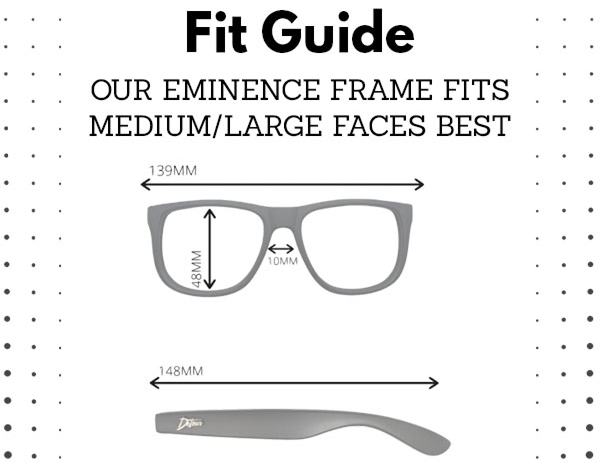 Fit Guide: Our Eminence frame fits Medium/Large faces best. Measurements: 139 mm frame width, 48 mm lens height, 10 mm bridge, 148 mm temple length.