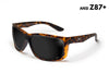 Our Z87+ collection meets ANSI Z.87+ impact requirements and is stamped on both the lens and temple for jobsite compliance. As always please check with your safety supervisor for individual jobsite compliance. Each pair includes a free Detour pouch.